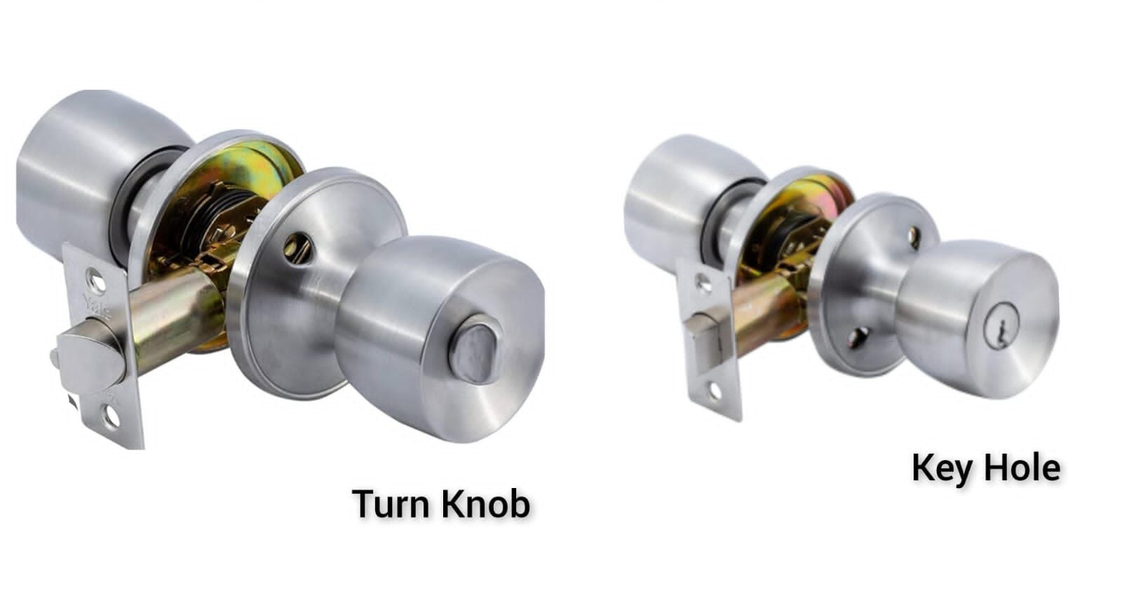 ENTRANCE LOCK, KEY ON ONE SIDE AND TURN KNOB ON THE OTHER.