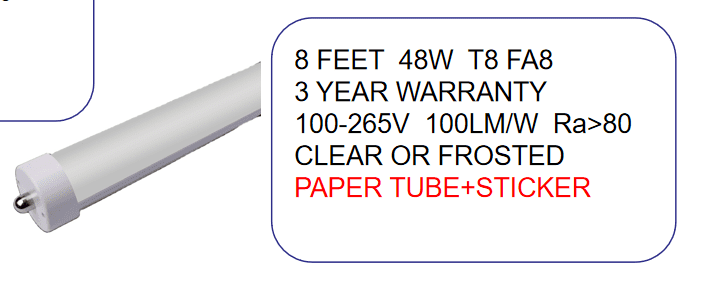 18W 4FT MILK WHITE 100-277V 100LM/W Ra>80 FA8 6500k DOUBLE END Longer life time 30,000hrs with 2 years warranty;
